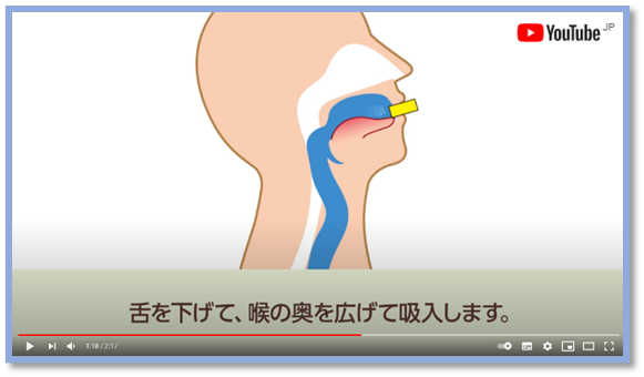 独立行政法人 環境再生保全機構の提供する動画チャンネルでも正しい吸入の方法を動画が確認することが可能です。